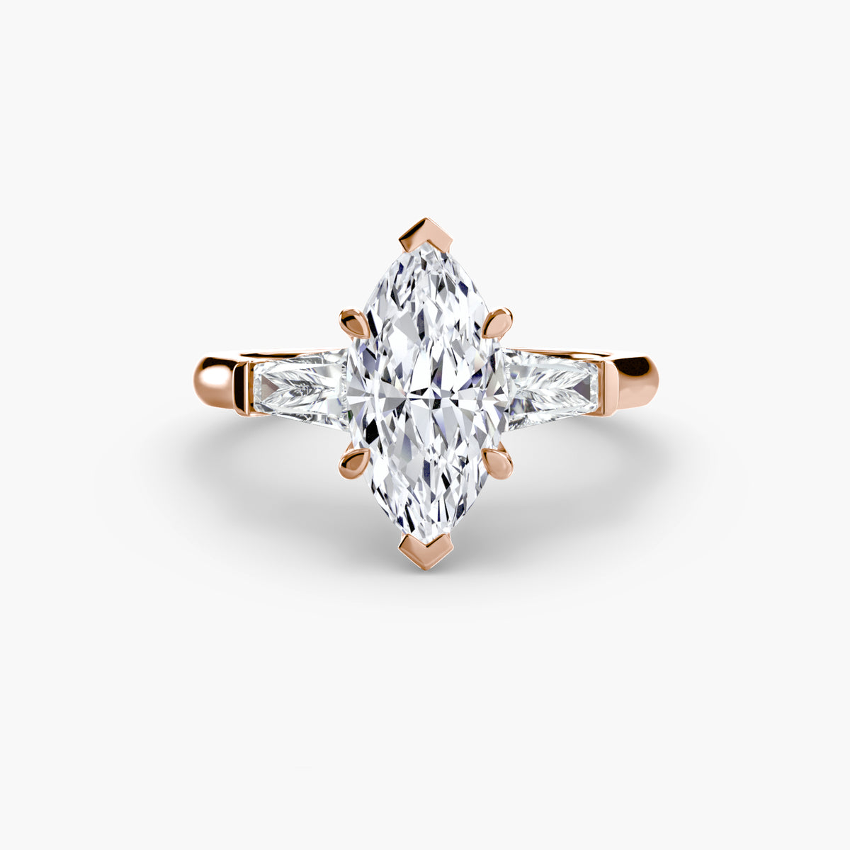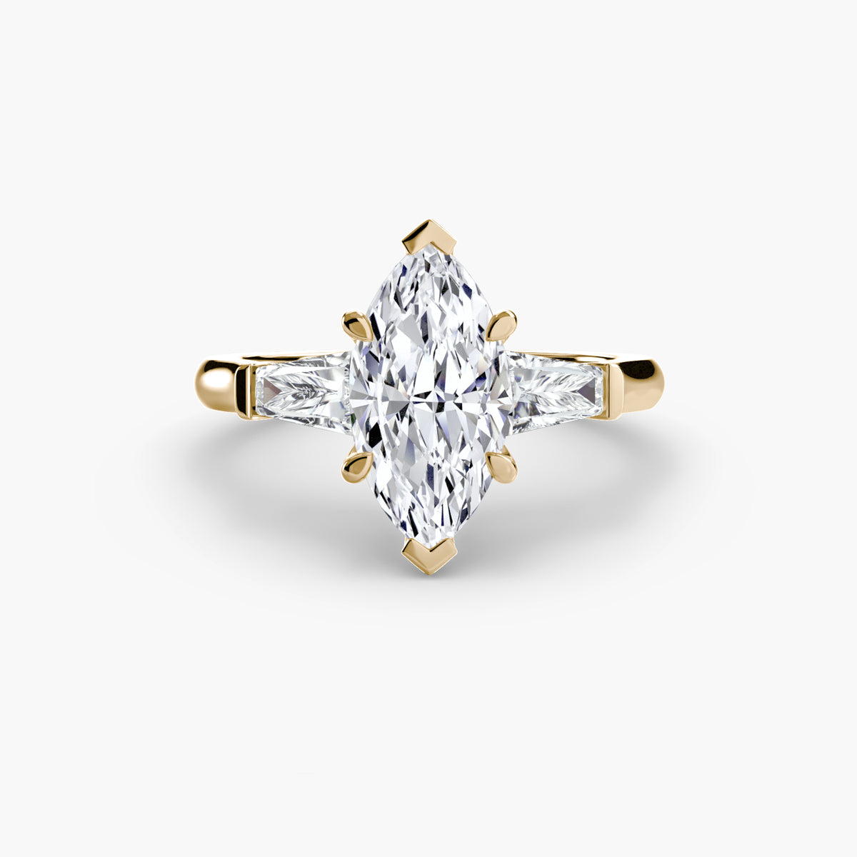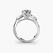 Three-Stone Ring (Baguette Side Stones) - 9K White Gold / Round