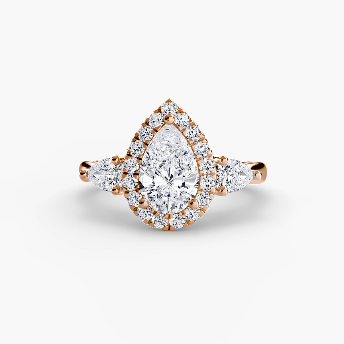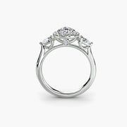 Three-Stone Ring with Halo - 9K White Gold / Pear